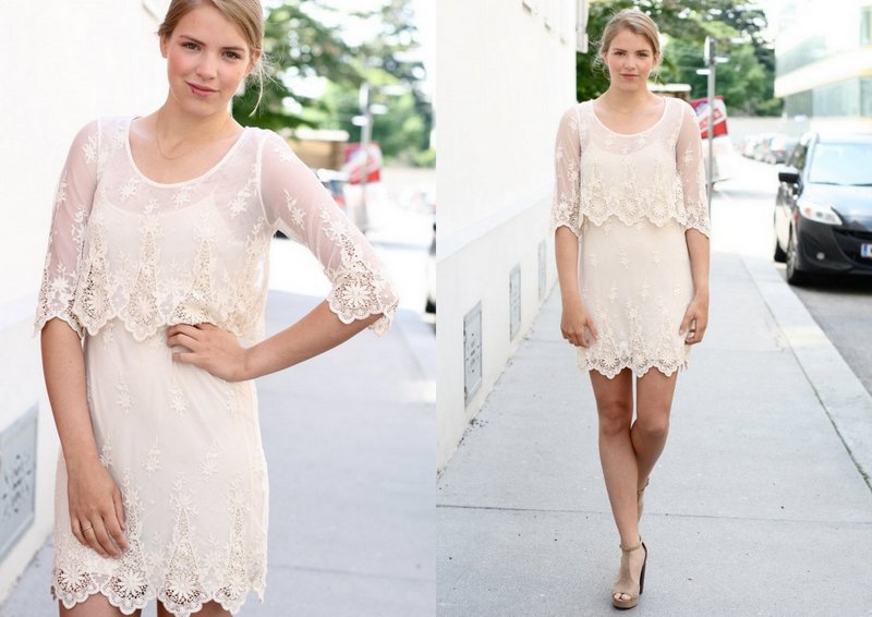 Cannes. The film festival in Cannes hit another round and everybody was talking about well the movies and the looks. I was invited by deals.com to enter a a little challenge. I was supposed to style a look a celebrity had worn with a lower budget of 100 Euros. I thought oh yes, the fun may begin. But it was a little harder, then I imagined. First things first I had to decide which celebrity and which look I was going to style. After clicking through so many pictures, that I couldnt think clear I saw this beautiful day red carpet look Uma Thurman pulled of. She wore a beautiful lace dress from D&G and really cute sandals by Jimmy Choo and I think she looked breath taking. Not to much effort and still a fabulous look. I am a huge Uma fan so I loved the fact, that I could do her look. I decided to take a look at Asos and was sure to find a perfect lace dress on budget there, but no it was a little disaster. After a little disappointment there I went on to the good old Zara Online Shop and found this beautiful lace dress, that is not quiet the same as Umas but still very similar from the cut and the idea. It went straight ahead to my online shopping basket. I found my main piece puhh!! The shoes were a compromise I had to make. I think even if you restyle a look you should still own it and make it your own, so I decided to go for sandals as well, but not as filigreeing as Mrs. Thurmans Jimmy Choos. And there I was 100 Euros lighter and online exhausted. I then realized I had no real accesoire and decided to own it. Shopping Queen wouldnt be the show for me, but I really love the end result and a challenge is always taken.